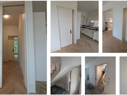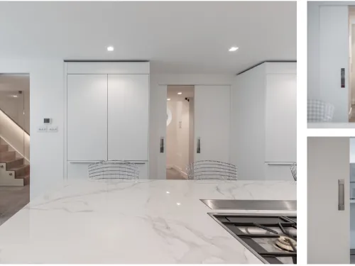 A refurbishment of a high-end private residential property in Weybridge. As part of the refurbishment an alternative solution to the existing traditional swing door was required. The scale of the refurbishment allowed for several door solutions to be assessed.