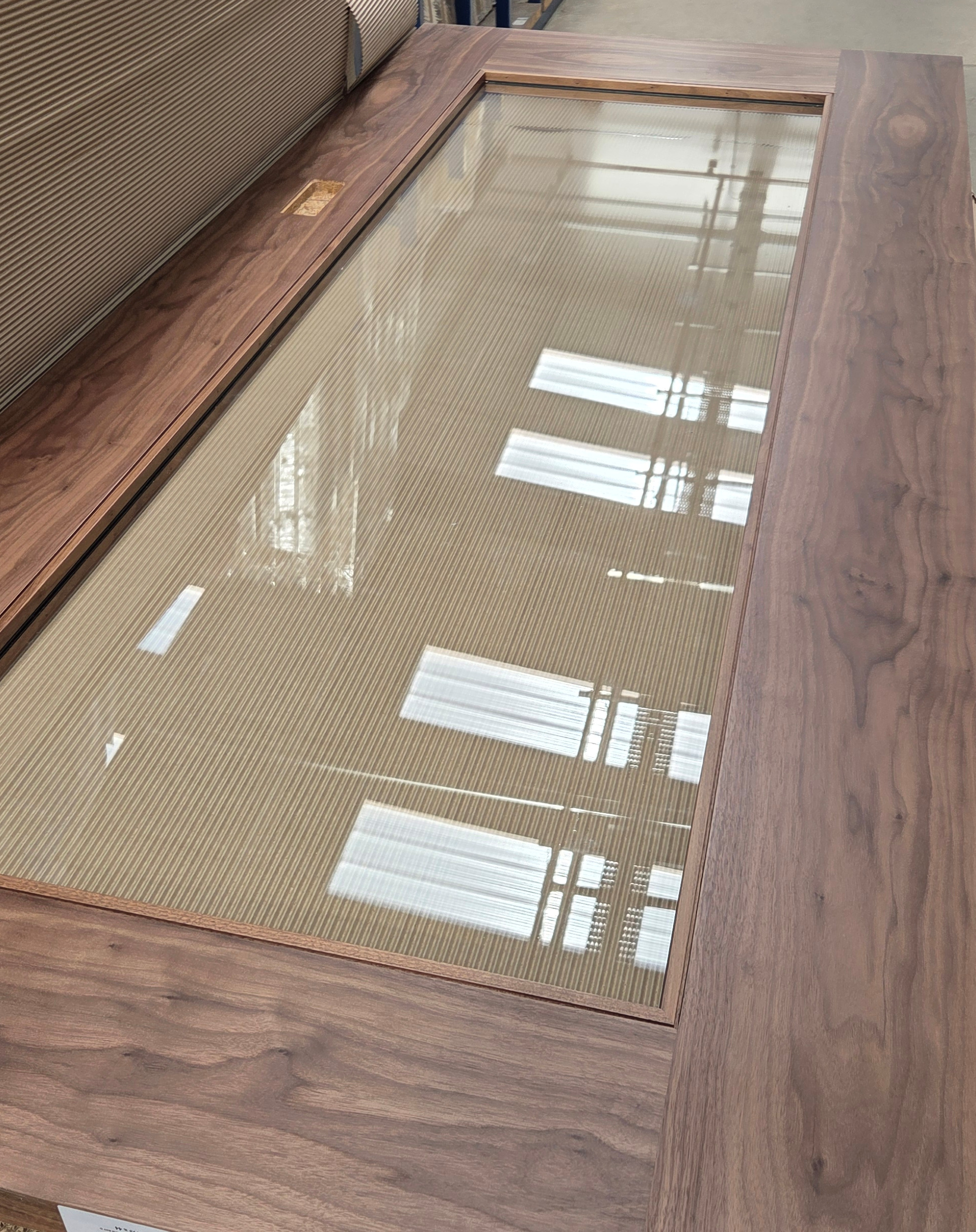 American Black Walnut, Crown cut veneer, taking on the versatile character of a natural product. Typically finished in 20-30% clear lacquer. Can be supplied "sand finished" for onsite colour matching and finishing.