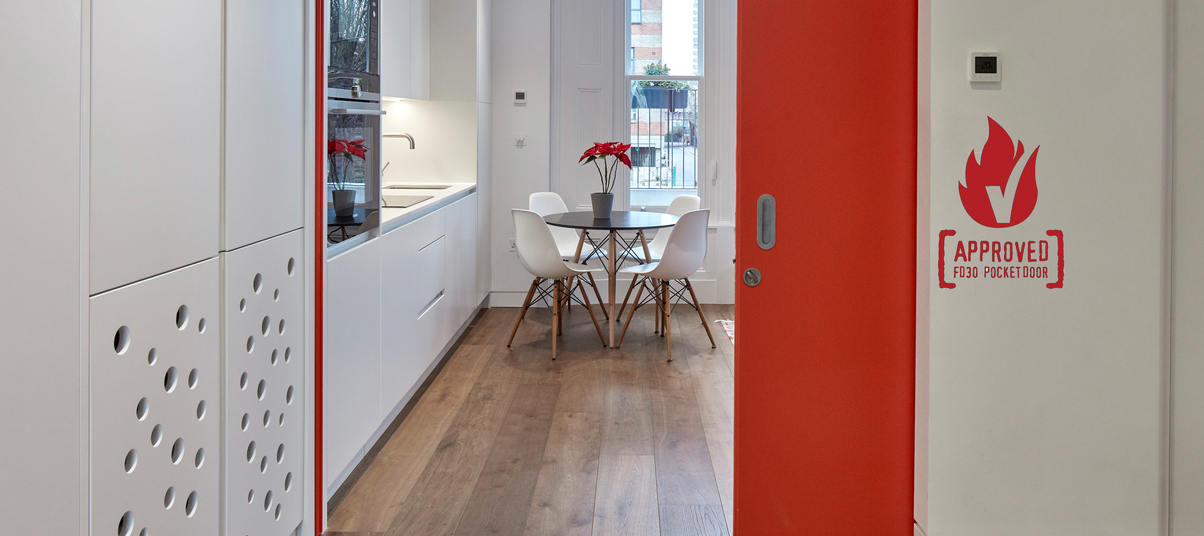 Portman can provide both single and double door systems that are certified for use with FD30 door leaves. The Portman FD30 system allows for an approved* single door leaf of up to 2700mm high and 1500mm wide to be installed. This unique assembly opens up new opportunities to create innovative designs and room layouts freedom of choice allows once again for a consistent aesthetic with other doors in the vicinity.